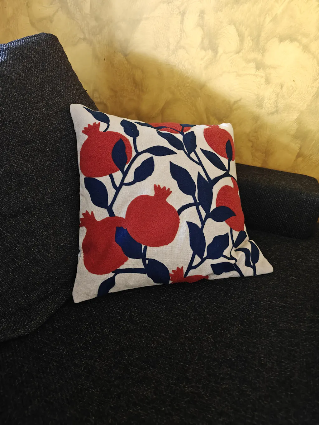 Elevate your home decor with our Anaar Bazaar Tufted Cushion Cover. Handcrafted in India, this luxurious cushion features a modern take on the classic pomegranate design. The tufted texture adds a touch of artistry to your space. Measuring 16x16 inches, it's perfect for adding a sophisticated touch to any room.