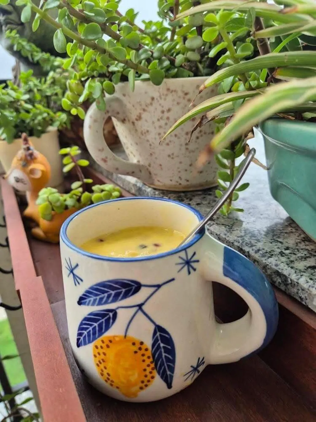 Whether you're pouring espresso, chai, or a cozy turmeric latte, its smooth glaze and comfortable grip make every sip feel like a moment of pause and pleasure. Perfect for gifting or styling your breakfast tray, it’s a little burst of nature in ceramic form.