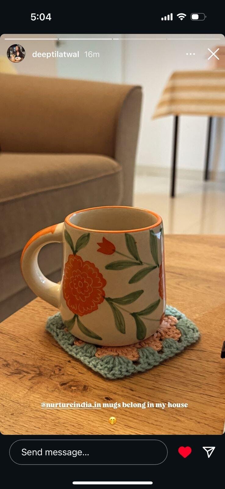 Sip in sunshine with every pour. Inspired by the vibrant marigold garlands of Indian mandis and festive mornings, this handpainted ceramic mug brings tradition to your fingertips. With a generous 300 ml capacity, it’s perfect for chai, coffee, or kadha—served with soul.